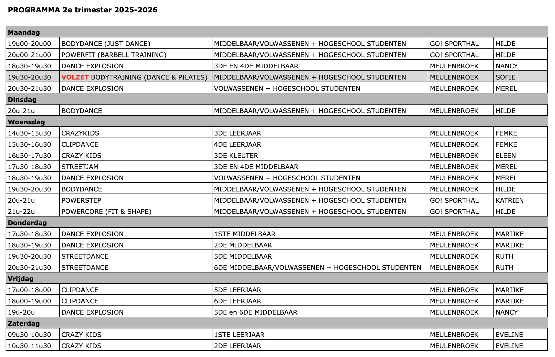 BodyTraining (Dance & Pilates), BodyDance (Just Dance), StreetDance, Dance Explosion,